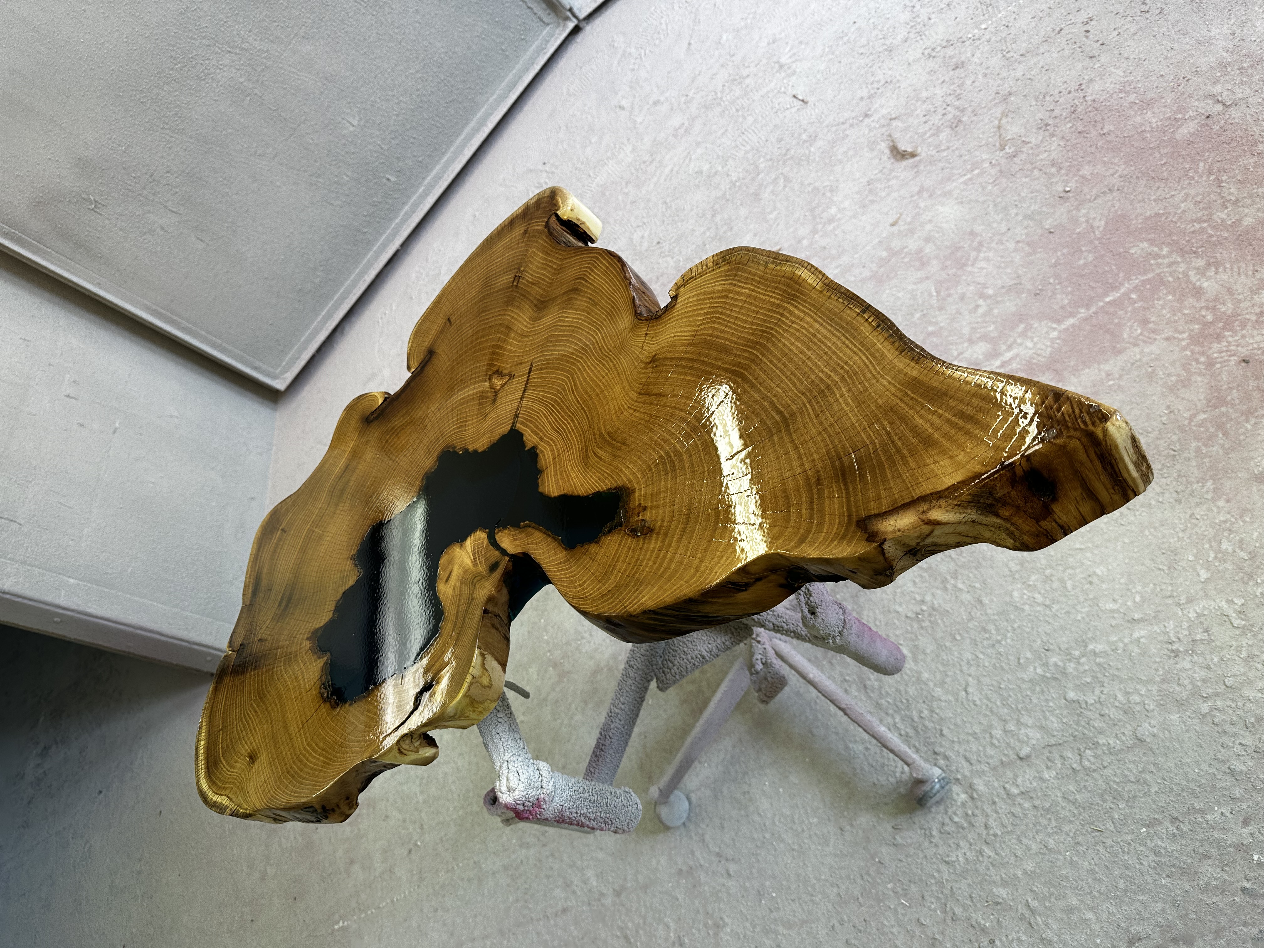 Takto to vše začalo. Akátové desky nám ležely na skladě celkem dlouho, ale naštěstí jednoho dne jedna zákaznice objevila jejich krásu a požádala nás o výrobu epoxidové stolové desky. Udělali jsme dvě desky, jedna putovala k zákaznici a druhá na e-shop (bohužel se hned prodala, ale není se čemu divit). Počkejte, až uvidíte, co jsme z těchto koláčů nekoláčů vyrobili.