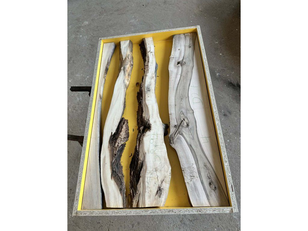 Set obsahuje naformátované fošny na výrobu epoxidového stolu a formu z lamina.