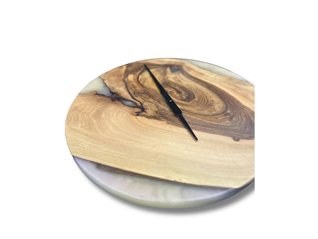 Designové hodiny z atypického dřeva a epoxidové pryskyřice.
