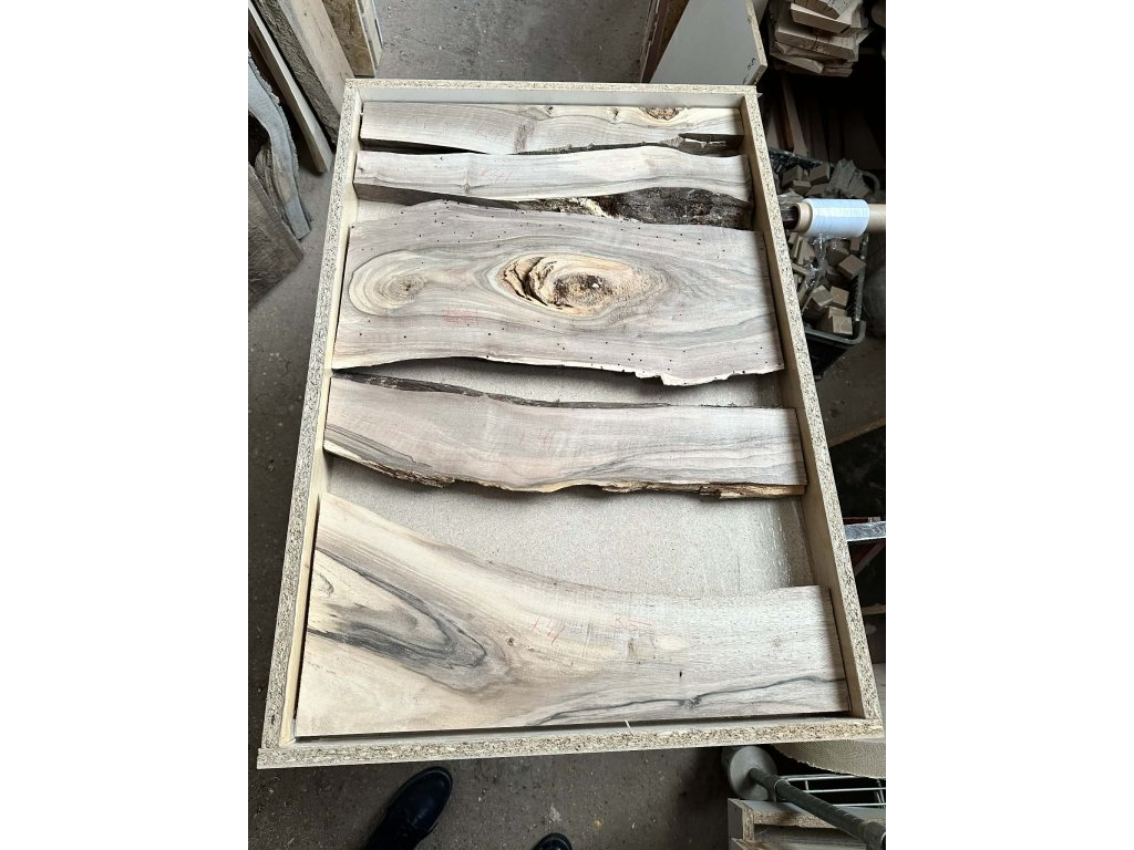 Set obsahuje naformátované fošny na výrobu epoxidového stolu a formu z lamina.