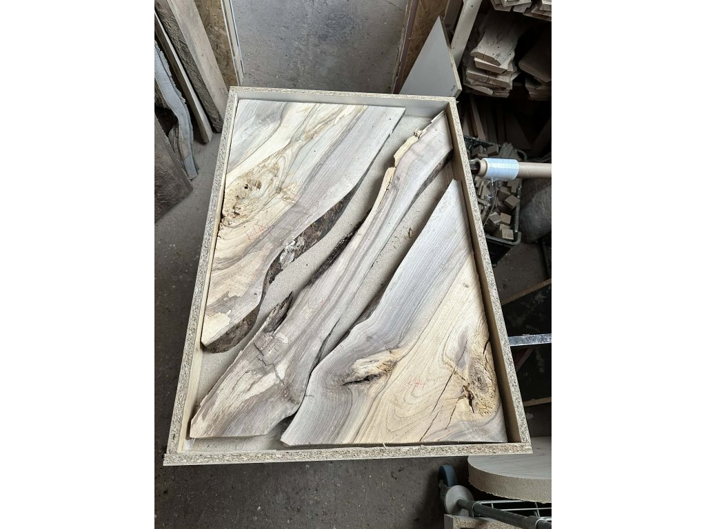 Set obsahuje naformátované fošny na výrobu epoxidového stolu a formu z lamina.