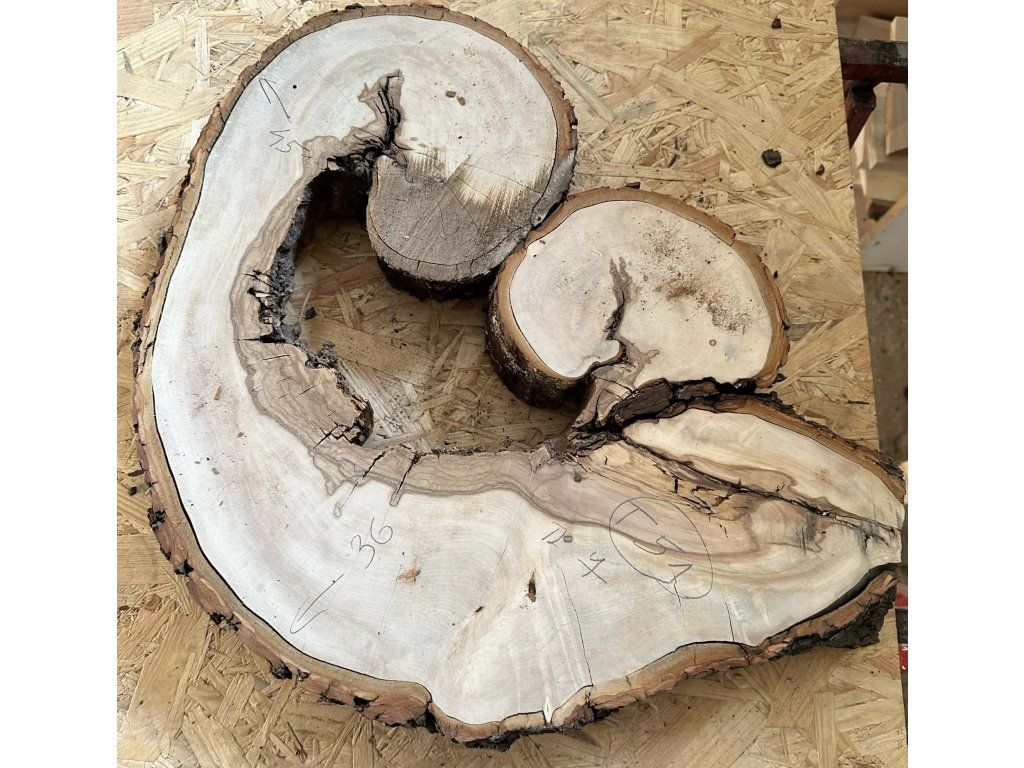 Atypické dřevo - koláč vhodný na epoxidovou výrobu či výrobu z masivu.